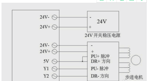 單軸接線伺服電機接shu法原理24v連接-,24v+連接+,5v連接pu+脈沖dr+方向,y1連接pu-脈沖y2連接dr-方向。