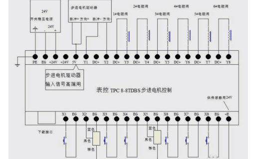 表控輸入輸出接線示意圖步進驅動機中的5v是輸入信號高端用的。