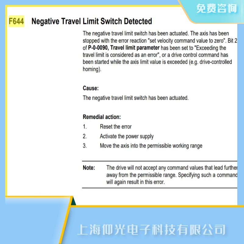 無(wú)論任何品牌的工控產(chǎn)品由于環(huán)境惡劣,操作不當(dāng),使用年限等原因,難免會(huì)出現(xiàn)故障,最重要的是及時(shí)查找出原因,對(duì)應(yīng)解決故障,及早恢復(fù)正常使用上海仰光面向全國(guó),支持順豐到付,擁有全套測(cè)試平臺(tái),軟硬件結(jié)合,帶載運(yùn)行,維修速度快,價(jià)格低,免費(fèi)檢測(cè),修好測(cè)試后發(fā)出,修不好不收費(fèi)用,免費(fèi)咨詢(xún):13817011982張工.關(guān)于博世Rexroth力士樂(lè)伺服器功率模塊報(bào)F644檢測(cè)到負(fù)行程限位開(kāi)關(guān)故障維修的技術(shù)問(wèn)題上海仰光電子提供24小時(shí)免費(fèi)咨詢(xún)服務(wù).