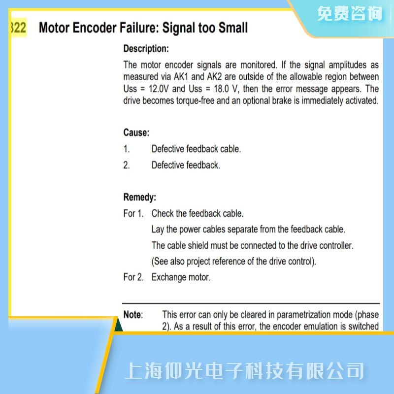 F822 電機(jī)編碼器故障:信號(hào)太小