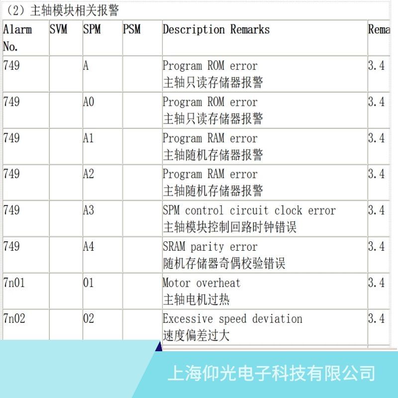 2.如果運行過程中出現(xiàn)該報警,關機重新開機,如果還是同樣故障,更換主軸單元。